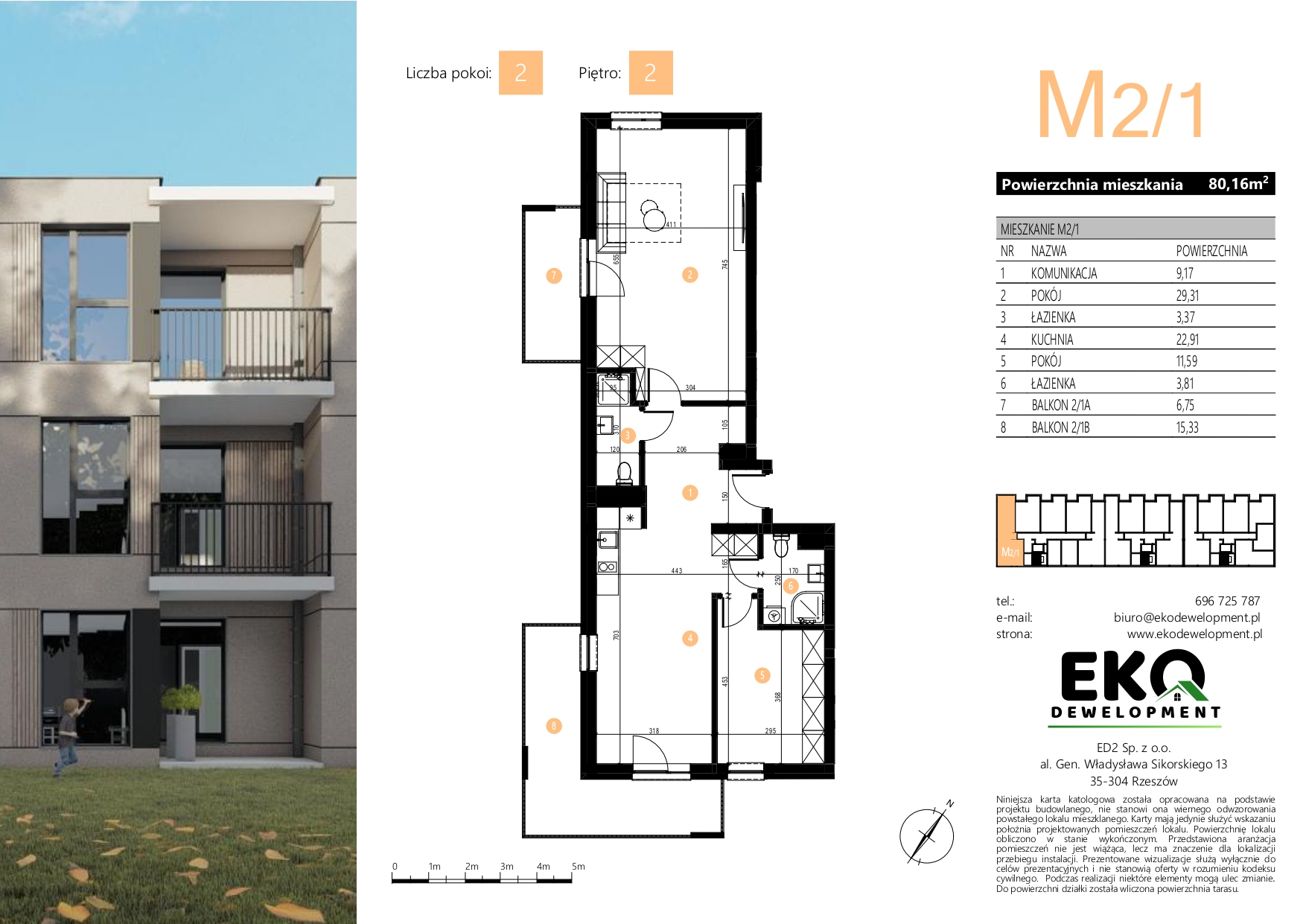Piętro 2Mieszkanie M2/1 to imponujący, przestronny lokal o powierzchni użytkowej 80,16 m². Jest to największa z dotychczasowych propozycji, oferująca luksusową przestrzeń oraz wyjątkowo duże powierzchnie dodatkowe.
