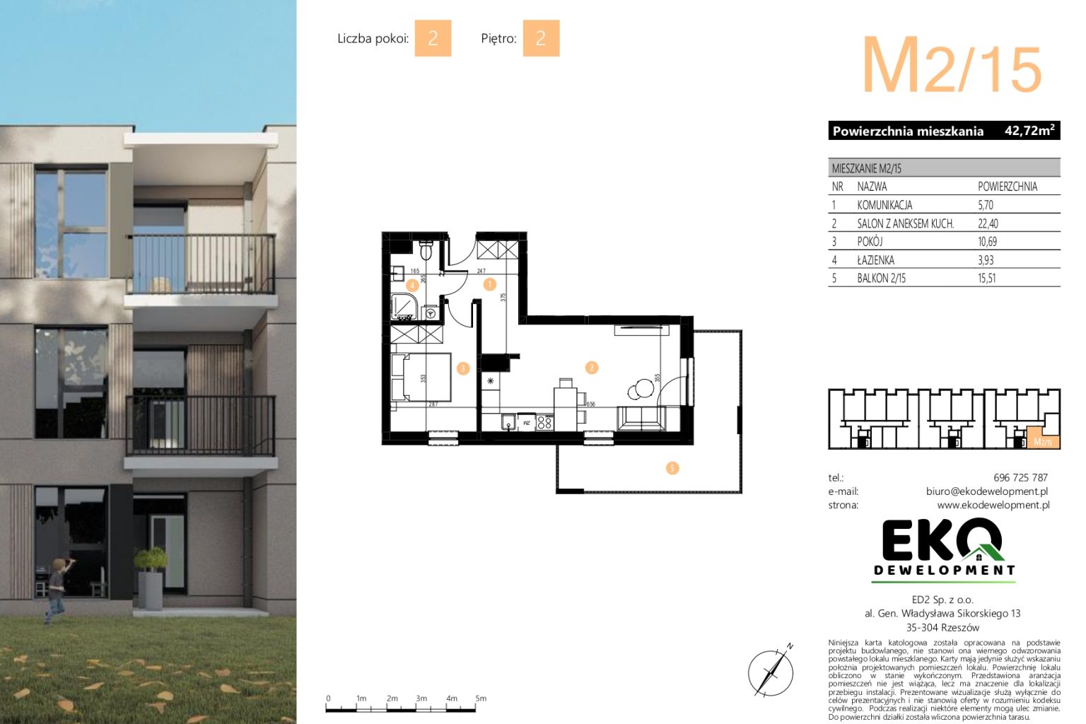 Na sprzedażRzeszówMieszkanie – M2_15 – 42,72 m² Mieszkanie M2/15 to funkcjonalny lokal dwupokojowy o łącznej powierzchni użytkowej 42,72 m². Jest42 m211491280/ PLN
